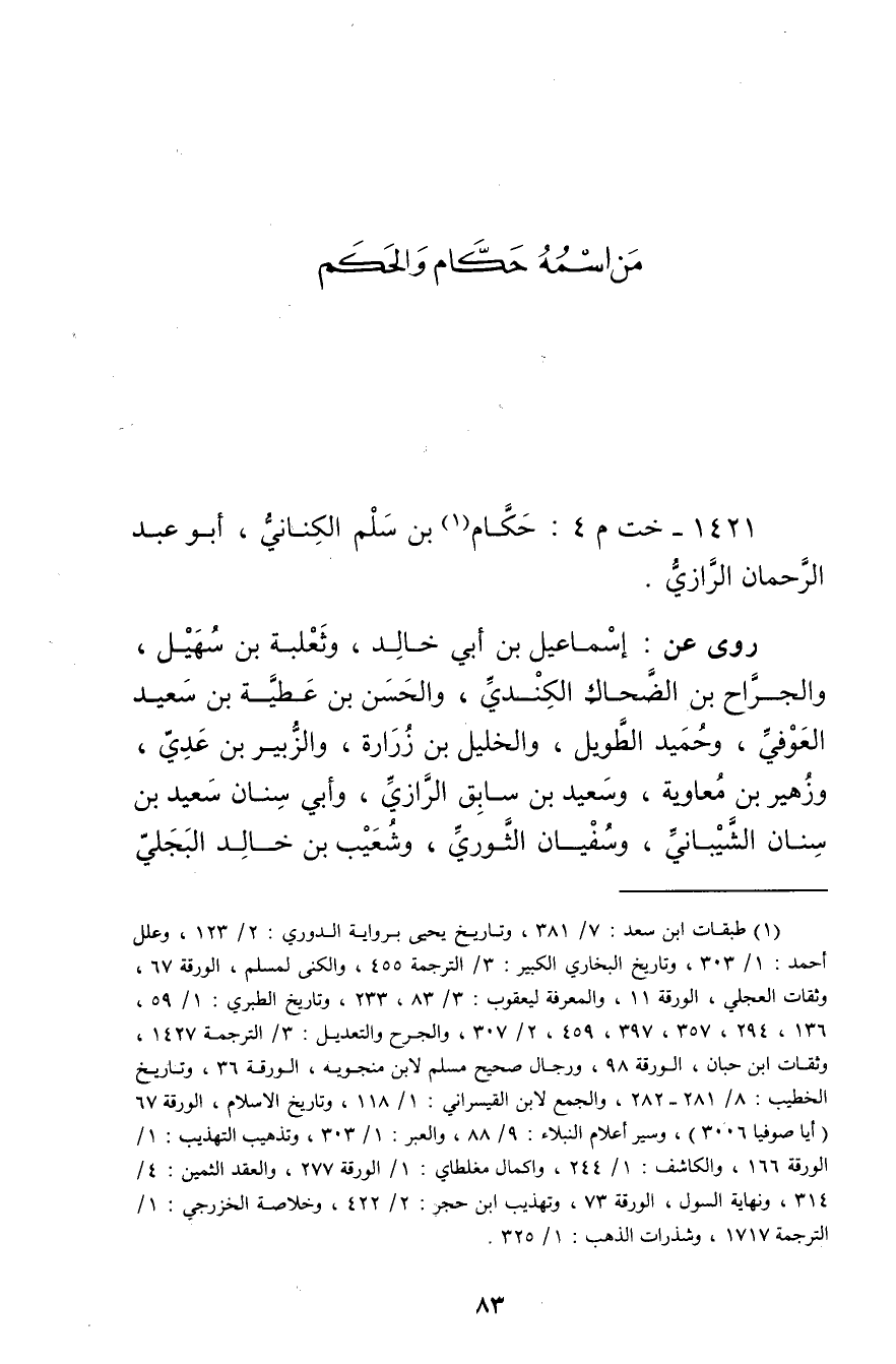 1421 - خت م 4: حكام بن سلم الكناني (1) ، أَبُو عبد الرحمن الرازي.