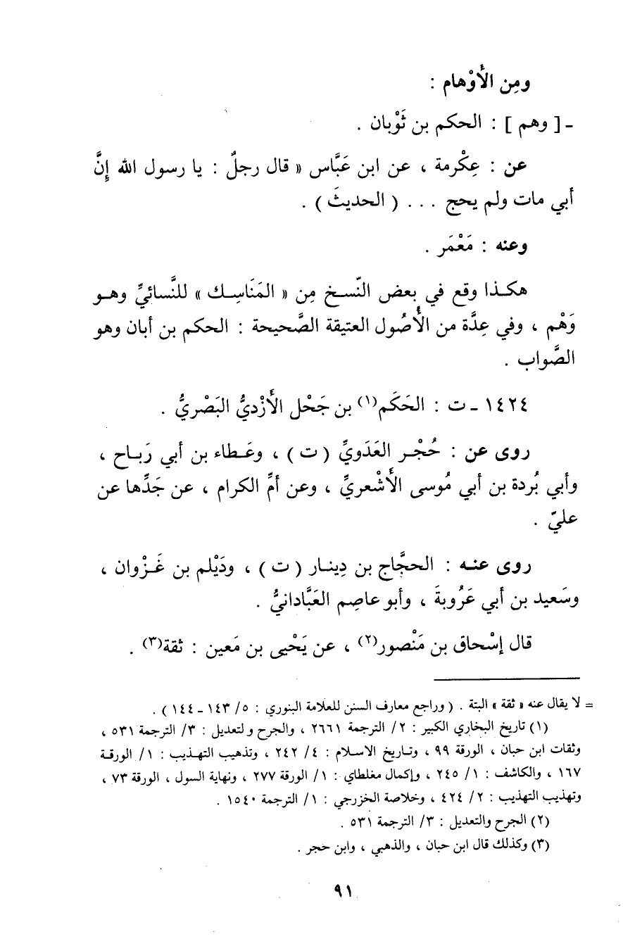 هكذا وقع في بعض النسخ من"المناسك"للنسائي وهو وهم، وفي عدة من الأصول العتيقة الصحيحة: الحكم بن أبان وهو الصواب.