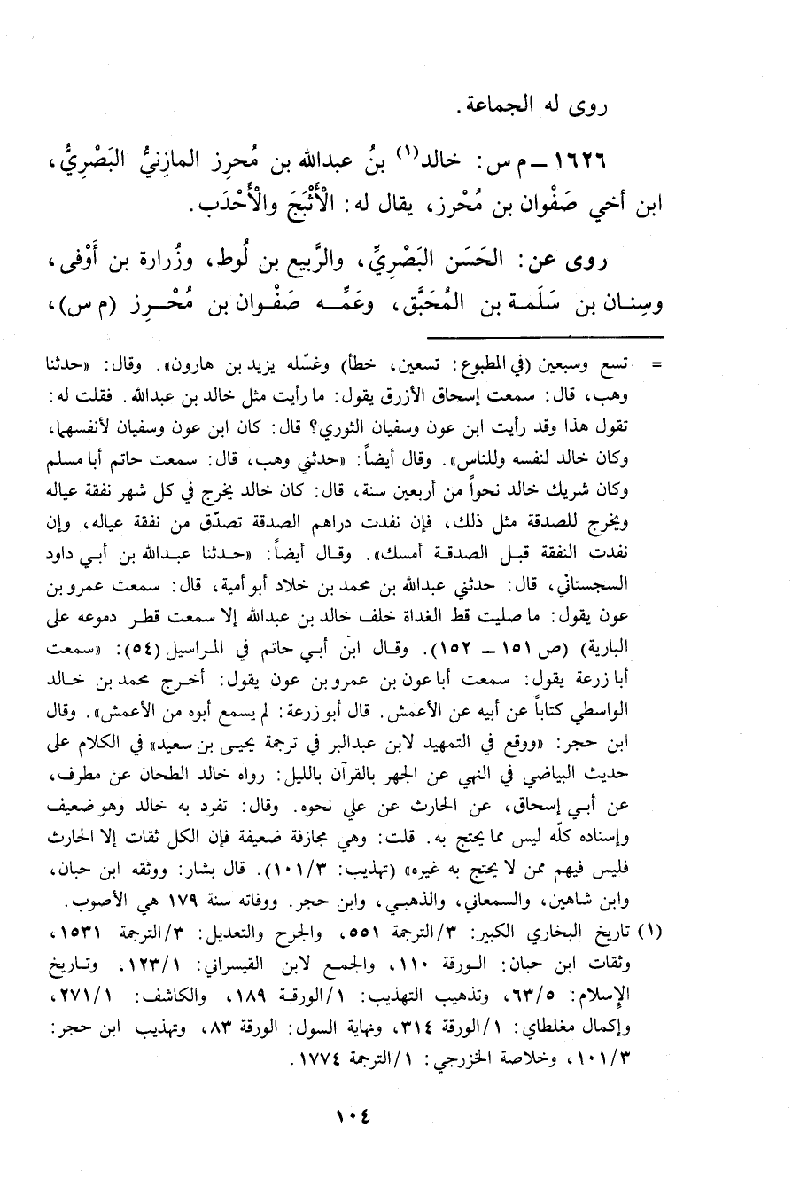 1626 - من س: خالد بن عَبد اللَّهِ بن محرز المازني البَصْرِيّ (1) ، ابْن أخي صفوان بْن محرز، يقَالَ لَهُ: الأثبج والأحدب.