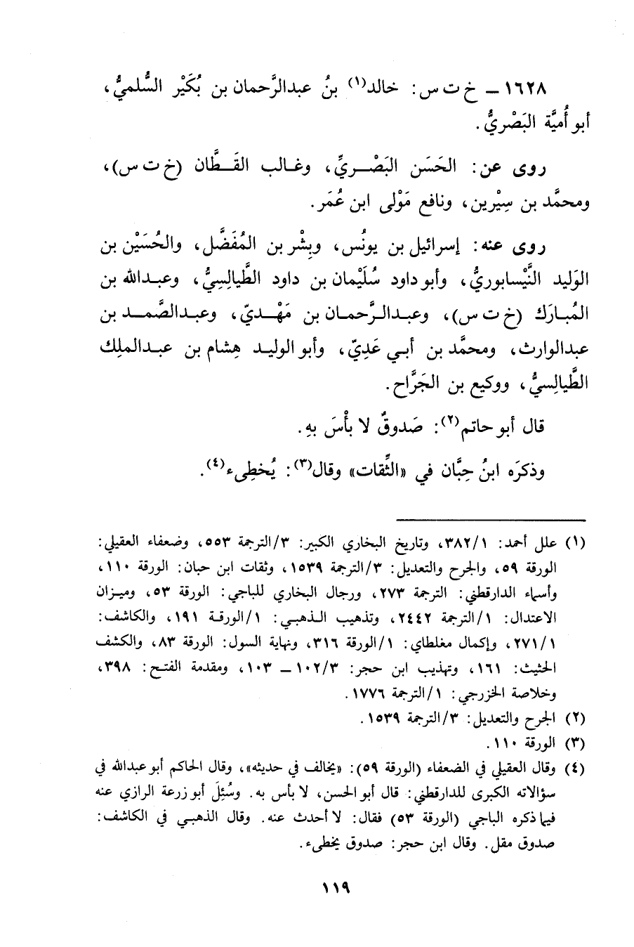 1628 - خ ت س: خالد بن عبد الرحمن بن بكير السلمي (1) ، أَبُو أمية البَصْرِيّ.