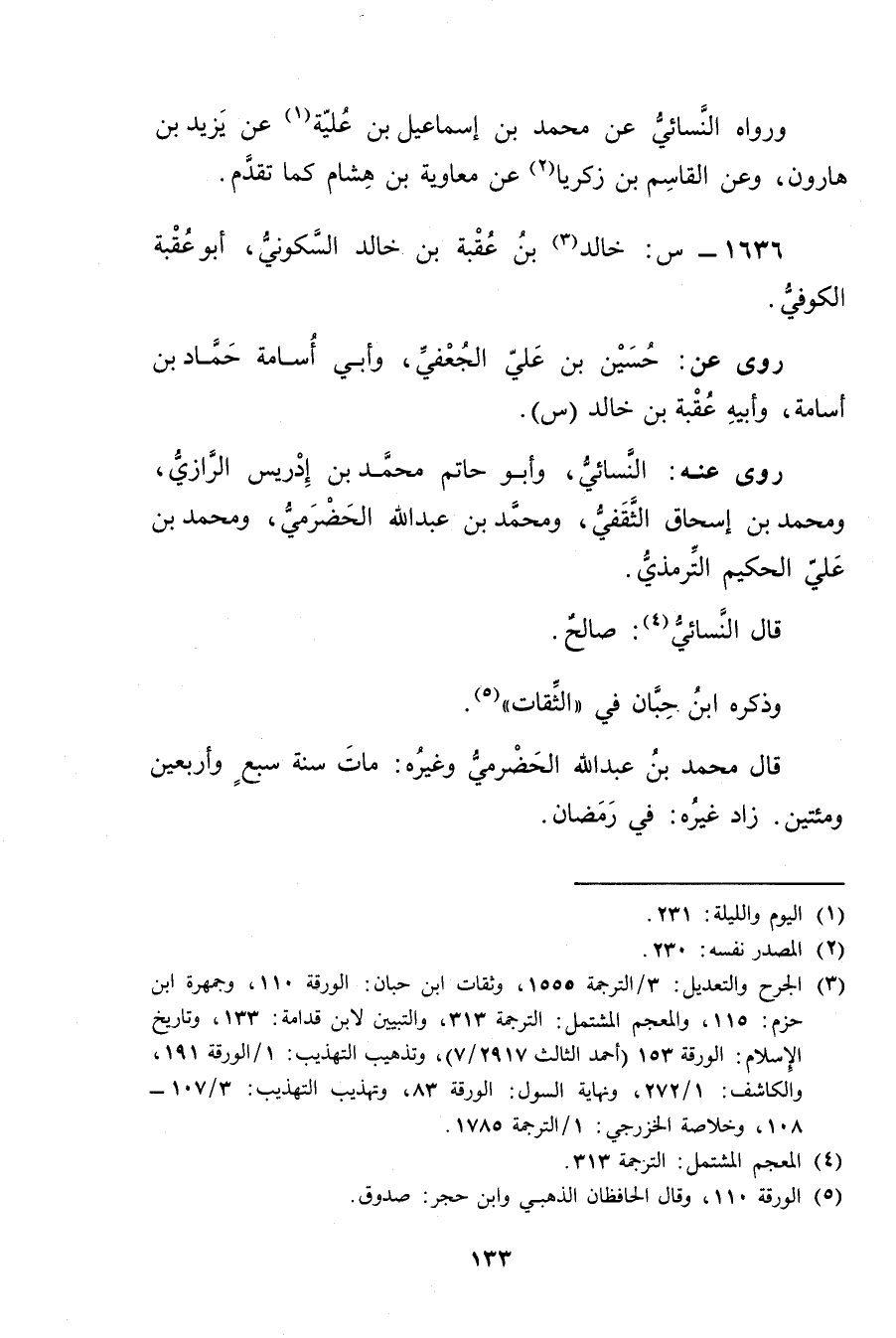 (3) الجرح والتعديل: 3 / الترجمة 1555، وثقات ابن حبان: الورقة 110، وجمهرة ابن حزم: 115، والمعجم المشتمل: الترجمة 313، والتبيين لابن قدامة: 133، وتاريخ الاسلام: الورقة 153 (أحمد الثالث 2917 / 7) ، وتذهيب التهذيب: 1 / الورقة 191، والكاشف: 1 / 272، ونهاية السول: الورقة 83، وتهذيب التهذيب 3 / 107 - 108، وخلاصة الخزرجي: 1 / الترجمة 1785.