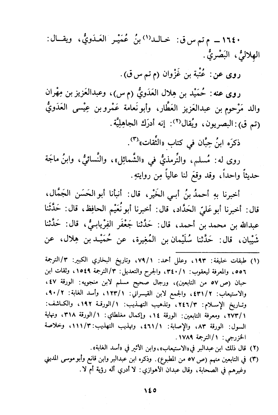 1640 - م تم س ق: خالد بن عُمَير العدوي (1) ، ويُقال: الهلالي، البَصْرِيّ.