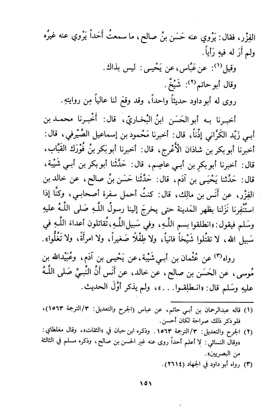 (1) قاله عَبْد الرَّحْمَن بْن أَبي حاتم. عن عباس (الجرح والتعديل: 3 / الترجمة 1563) . فلو ذكر ذلك صراحة لكان أحسن.