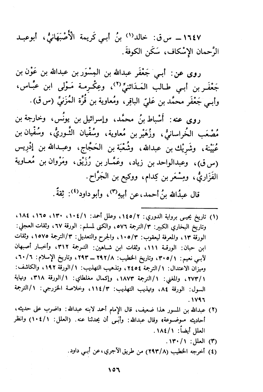 1647 - س ق: خالد بن أَبي كريمة الأصبهاني (1) ، أَبُو عبد الرحمن الإسكاف، سكن الكوفة.