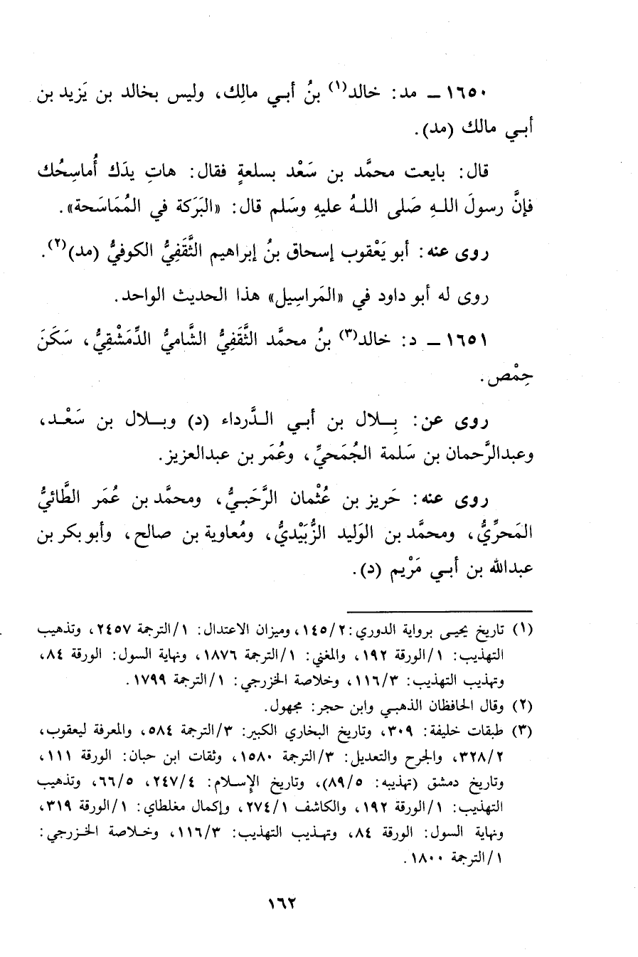 1650 - مد: خالد بن أَبي مالك (1) ، وليس بخالد بْن يزيد بْن أَبي مالك (مد) .