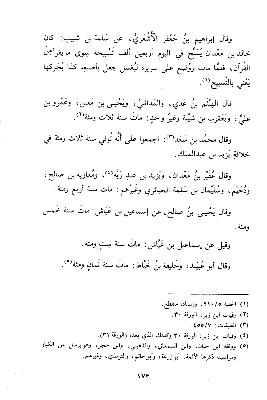 وَقَال عفير بْن معدان، ويزيد بْن عبد ربه (4) ، ومعاوية بْن صالح، ودحيم، وسُلَيْمان بْن سلمة الخبائري وغيرهم: مات سنة أربع ومئة.