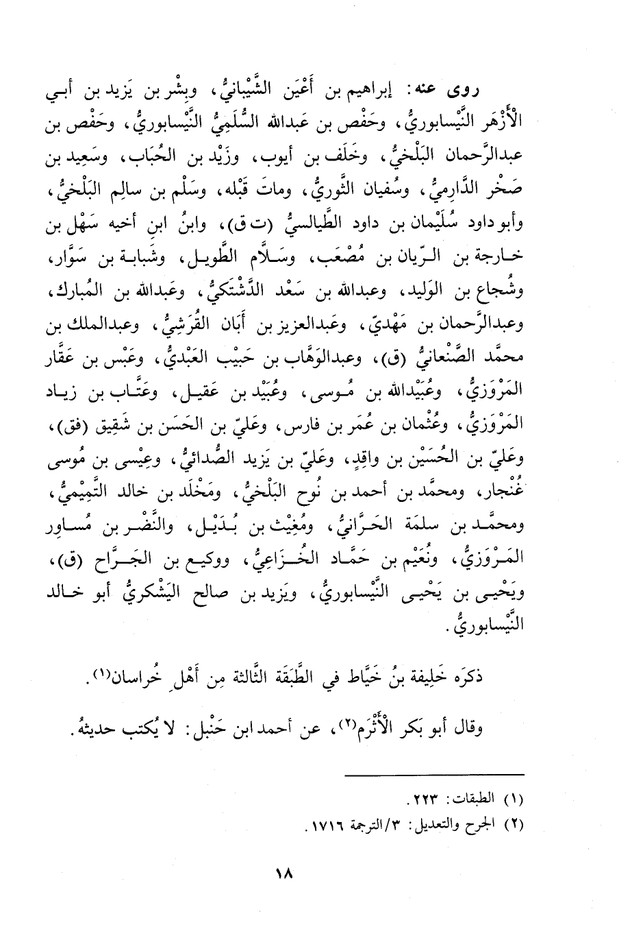 (1) الطبقات: 223. الجرح والتعديل: 3 / الترجمة 1716.