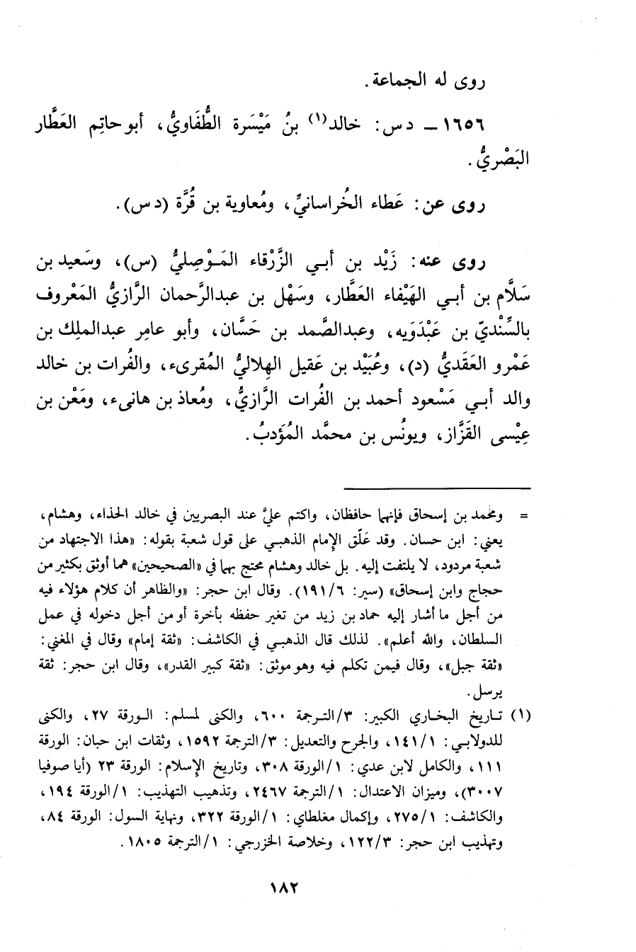 1656 - دس: خالد بن ميسرة الطفاوي (1) ، أَبُو حاتم العطار البَصْرِيّ.