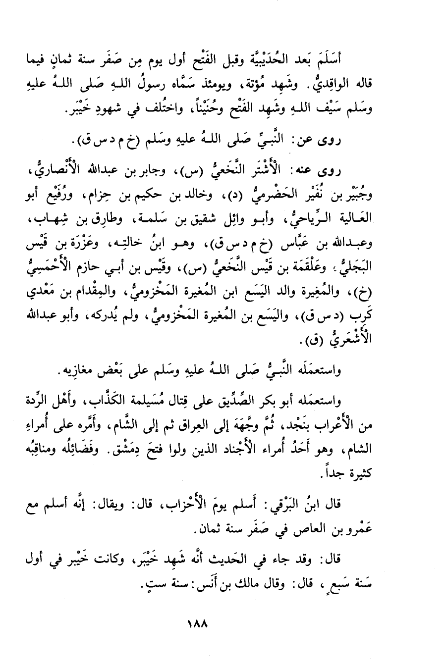 قال: وقد جاء فِي الحديث أَنَّهُ شهد خيبر، وكانت خيبر فِي أول سنة سبع، قال: وَقَال مالك بْن أنس: سنة ست.