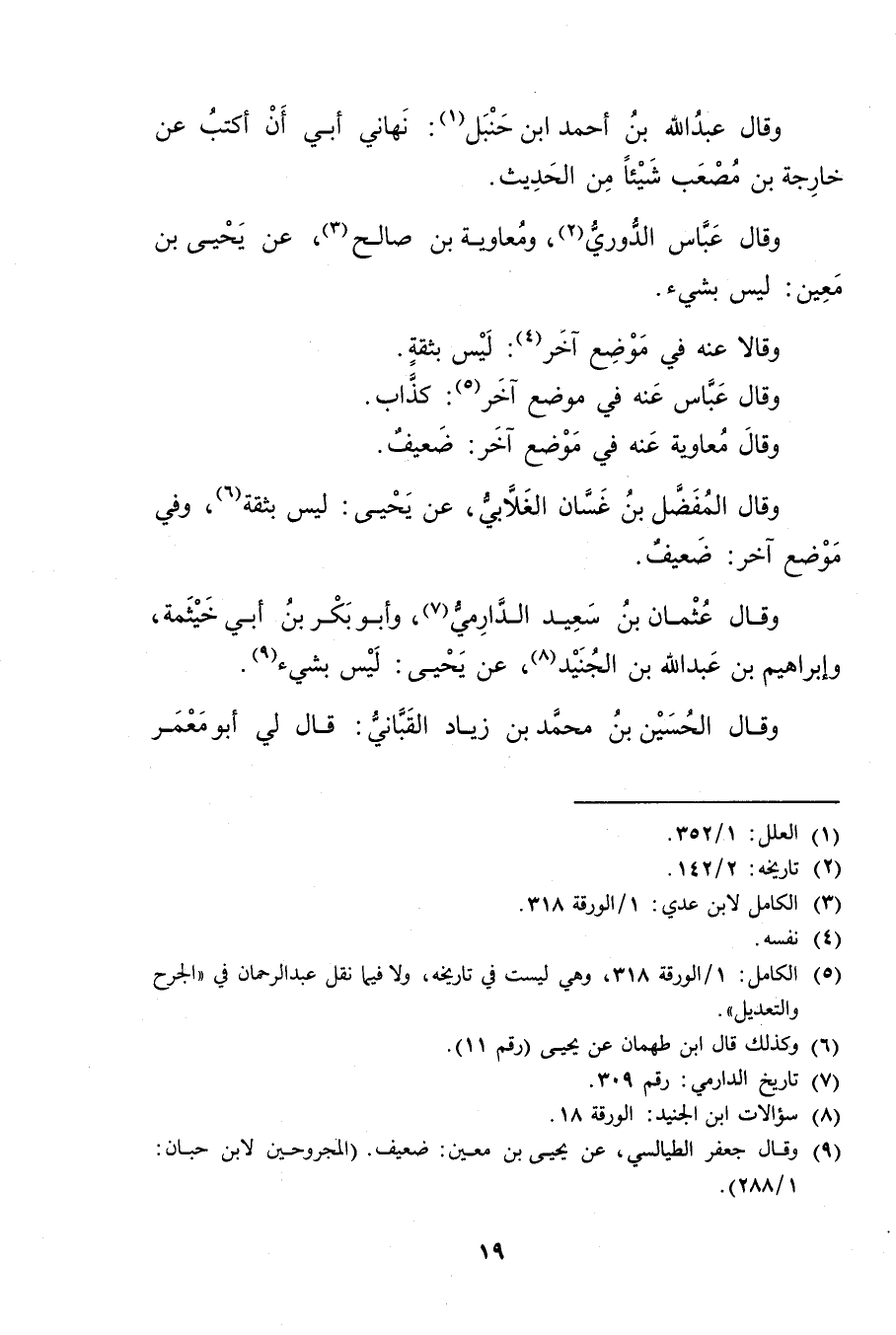 (5) الكامل: 1 / الورقة 318، وهي ليست في تاريخه، ولا فيما نقل عبد الرحمن في "الجرح والتعديل.