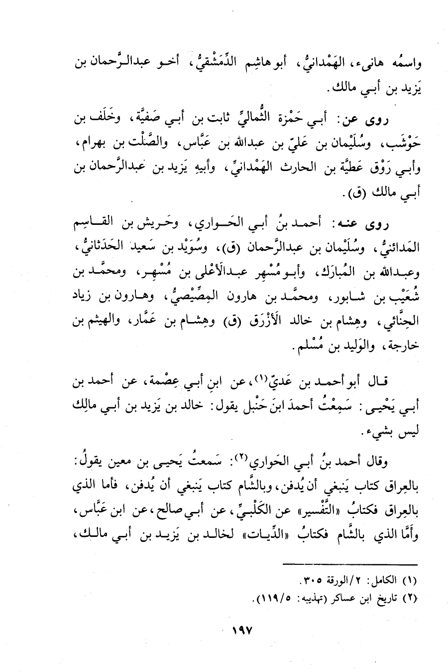 (2) تاريخ ابن عساكر (تهذيبه: 5 / 119) .