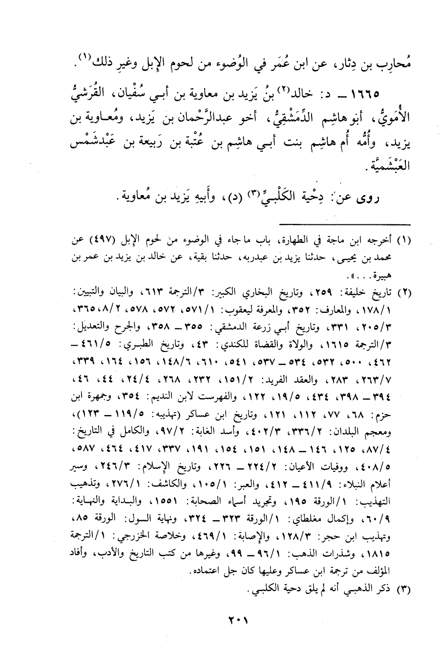 محارب بْن دثار، عَنِ ابن عُمَر فِي الوضوء، من لحوم الإبل وغير ذلك (1) ، 1665 - د: خالد (2) بْن يزيد بْن معاوية بْن أَبي سفيان، القرشي الأُمَوِي، أَبُو هاشم الدمشقي، أخو عبد الرحمن بْن يزيد، ومعاوية بْن يزيد، وأمه أم هاشم بنت أبي هاشم بْن عتبة بْن ربيعة بْن عبد شمس العبشمية.