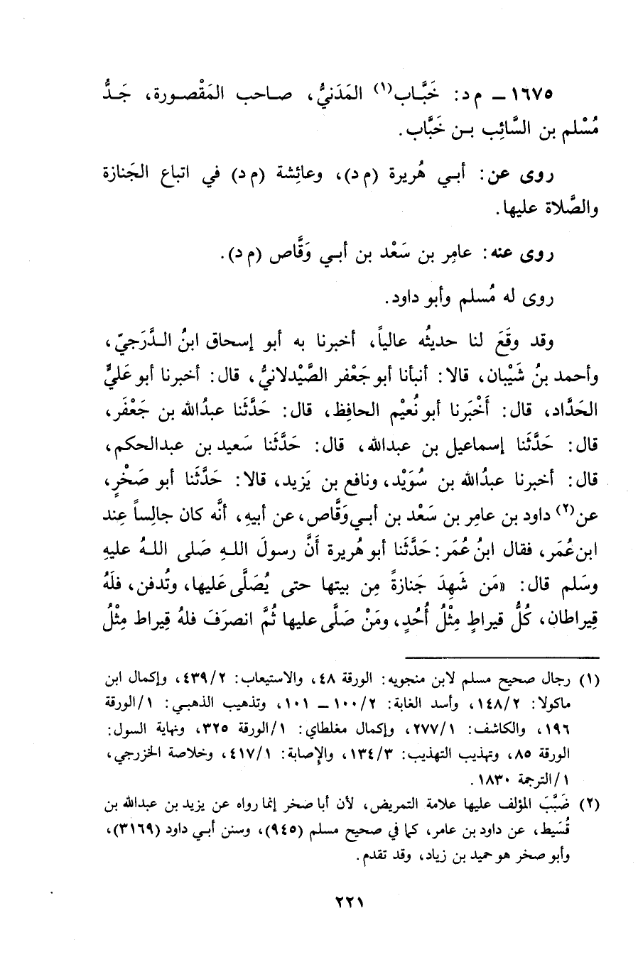 1675 - م د: خباب المدني (1) ، صاحب المقصورة, جد مسلم بْن السائب بْن خباب.
