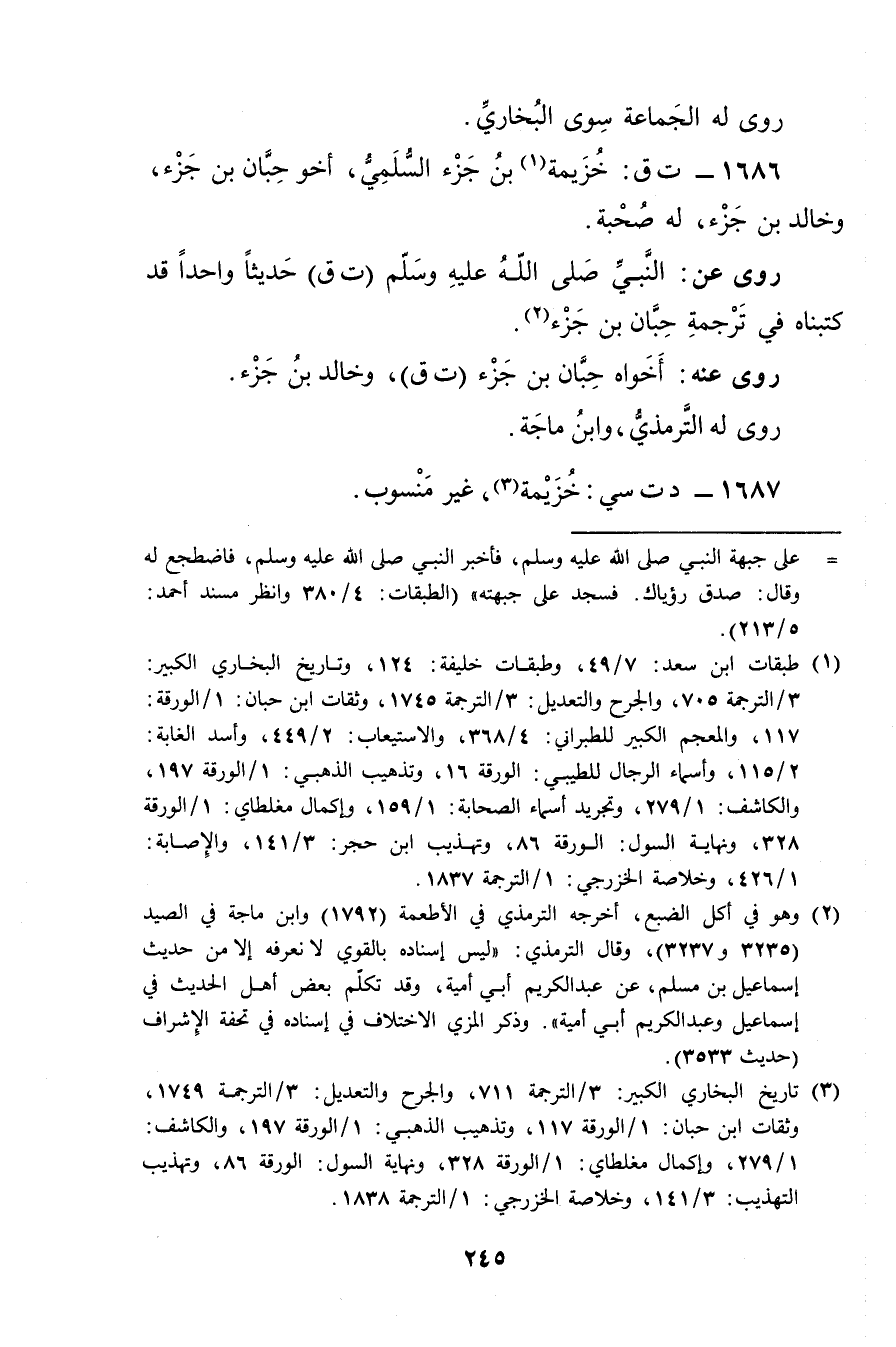 1686 - ت ق: خزيمة بن جزء السلمي (1) ، أخو حبان بْن جزء، وخالد بْن جزء، لَهُ صحبة.