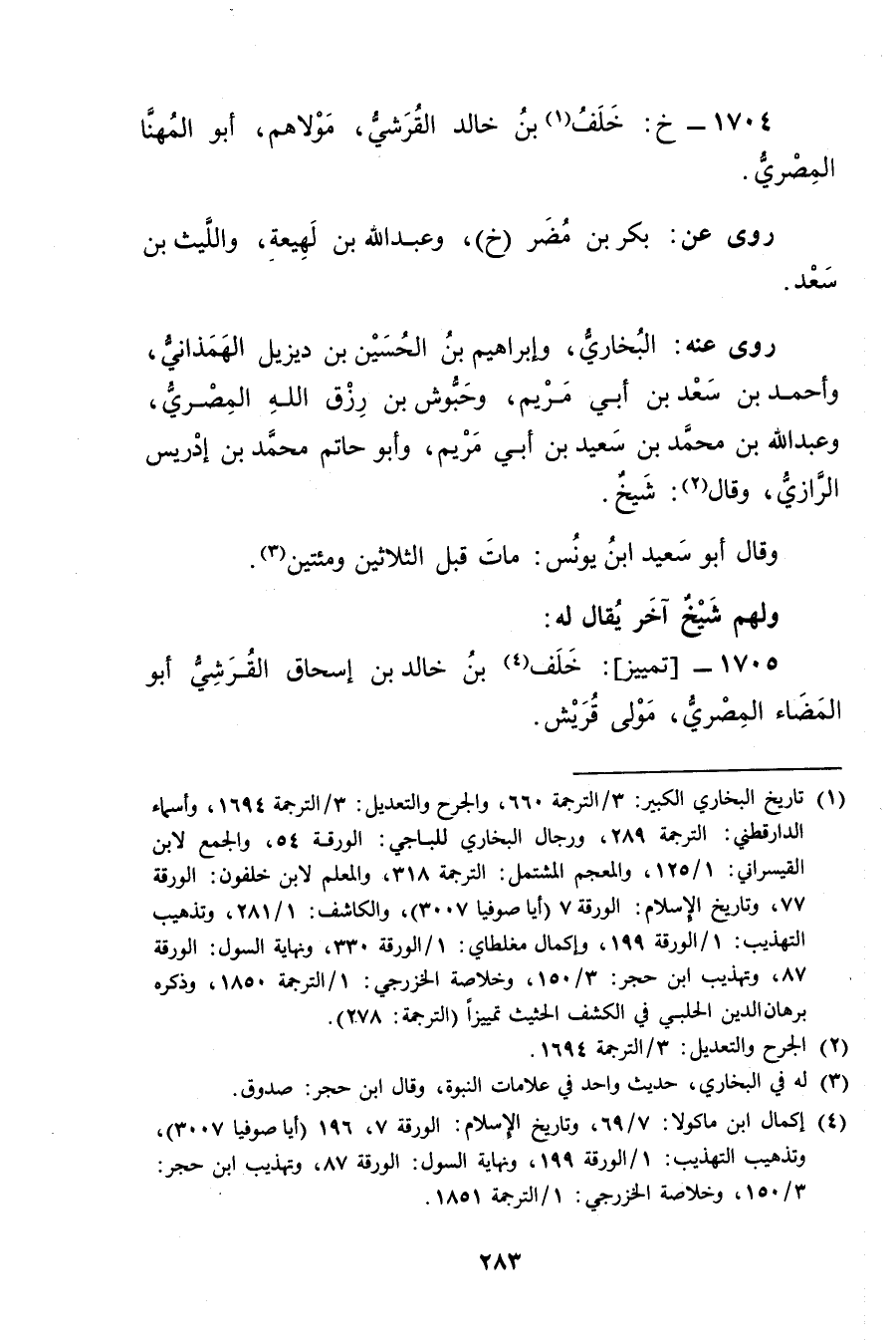 1705 - تمييز: خلف بن خَالِدِ بن إِسْحَاقَ القرشي أَبُو المضاء المِصْرِي (4) ، مولى قريش.