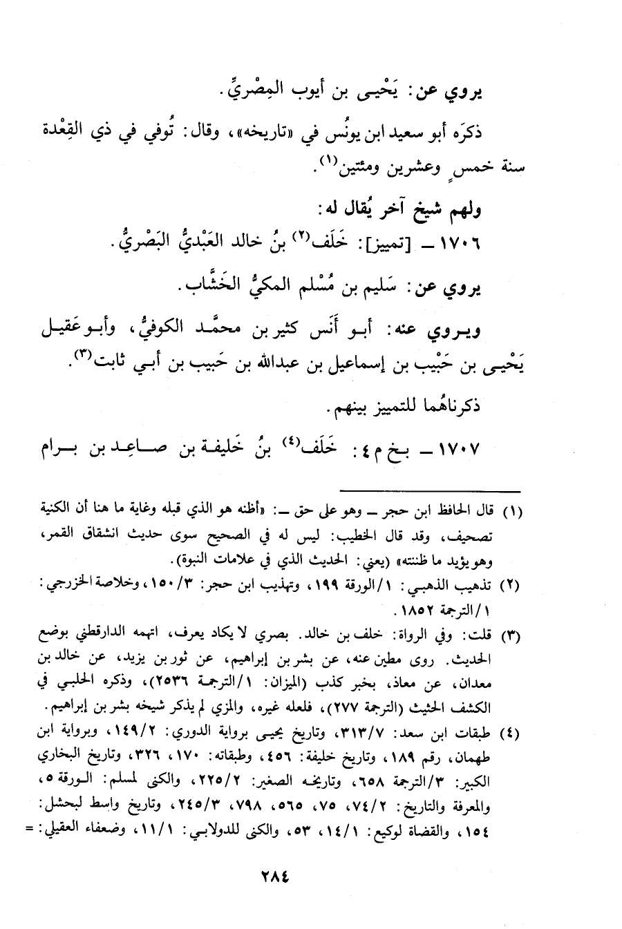 1706 - تمييز: خلف بن خَالِدٍ العبدي البَصْرِيّ (2) .