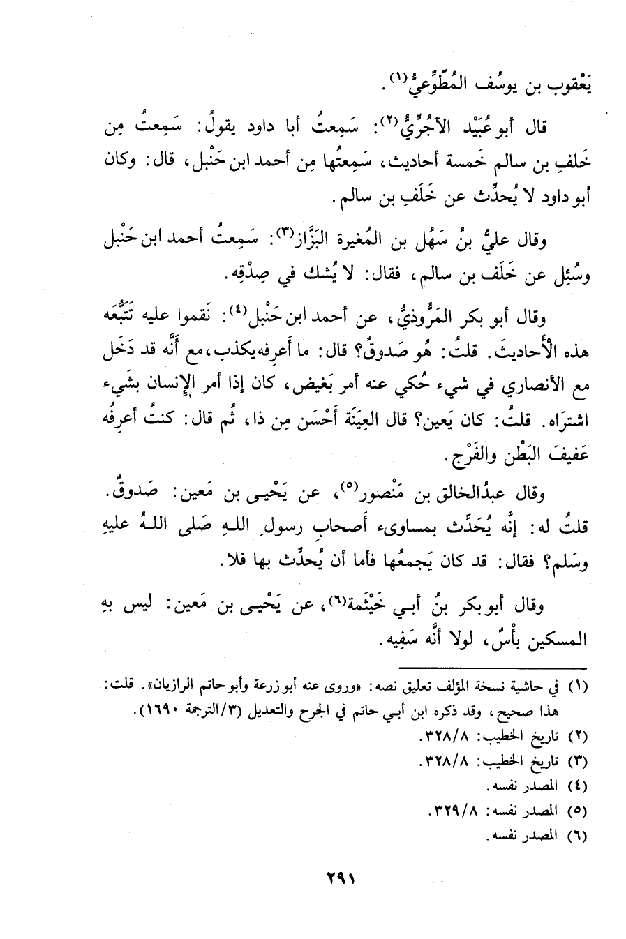 (1) في حاشية نسخة المؤلف تعليق نصه: وروى عنه أبو زُرْعَة وأبو حاتم الرازيان"قلت: هذا صحيح، وقد ذكره ابن أَبي حاتم في الجرح والتعديل (3 / الترجمة 1690) .