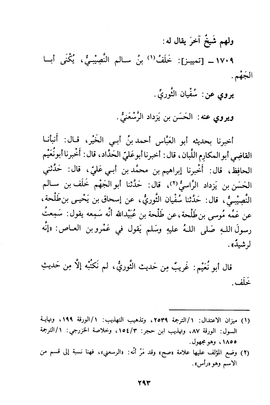 1709 - تمييز: خلف بن سالم النصيبي (1) ، يكنى أبا الجهم.
