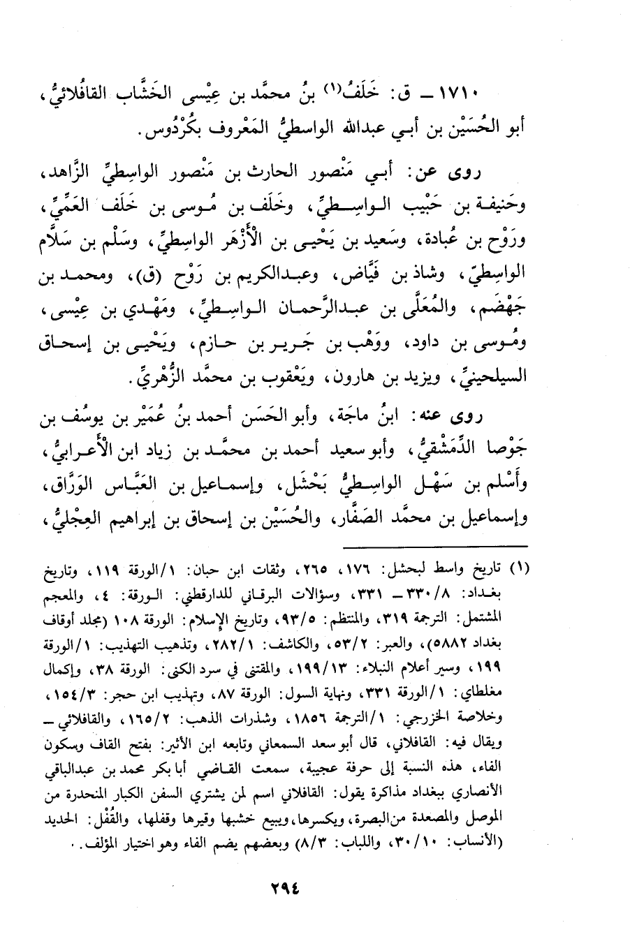 1710 - ق: خلف بن مُحَمَّد بن عيسى الخشاب القافلاني (1) ، أَبُو الْحَسَينِ بن أَبي عَبد اللَّهِ الواسطي المعروف بكردوس.