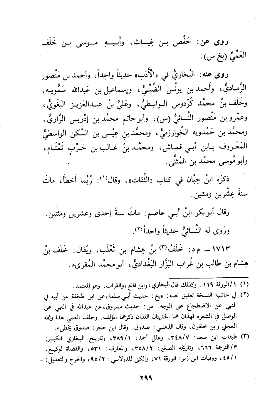 1713 - م د: خلف بن هشام بن ثعلب (3) ، ويُقال: خلف بْن هشام بْن طالب بْن غراب البزار البغدادي، أَبُو مُحَمَّد المقرئ.