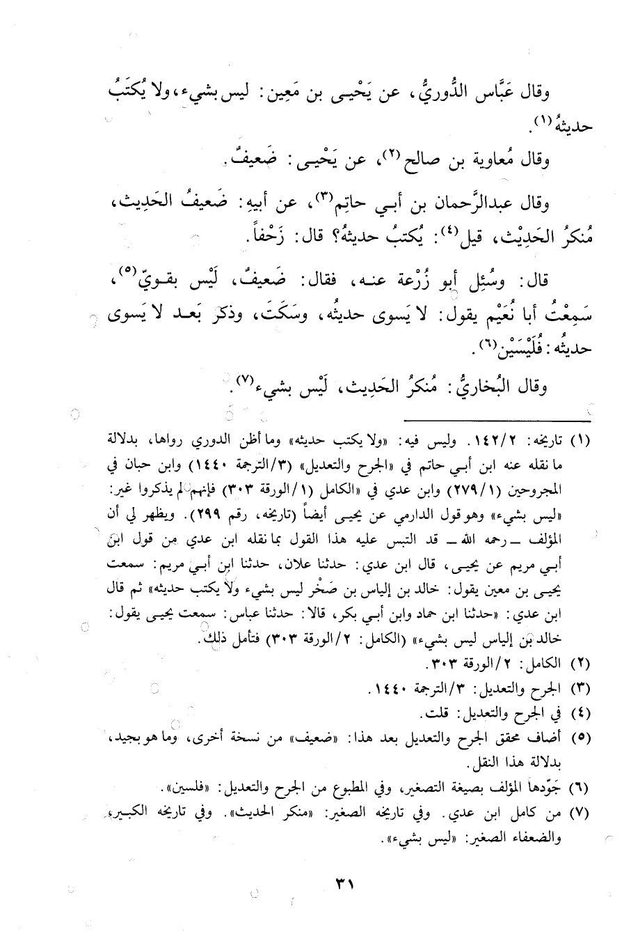 (7) من كامل ابن عدي. وفي تاريخه الصغير: منكر الحديث"، وفي تاريخه الكبير، والضعفاء الصغير: ليس بشيءٍ".