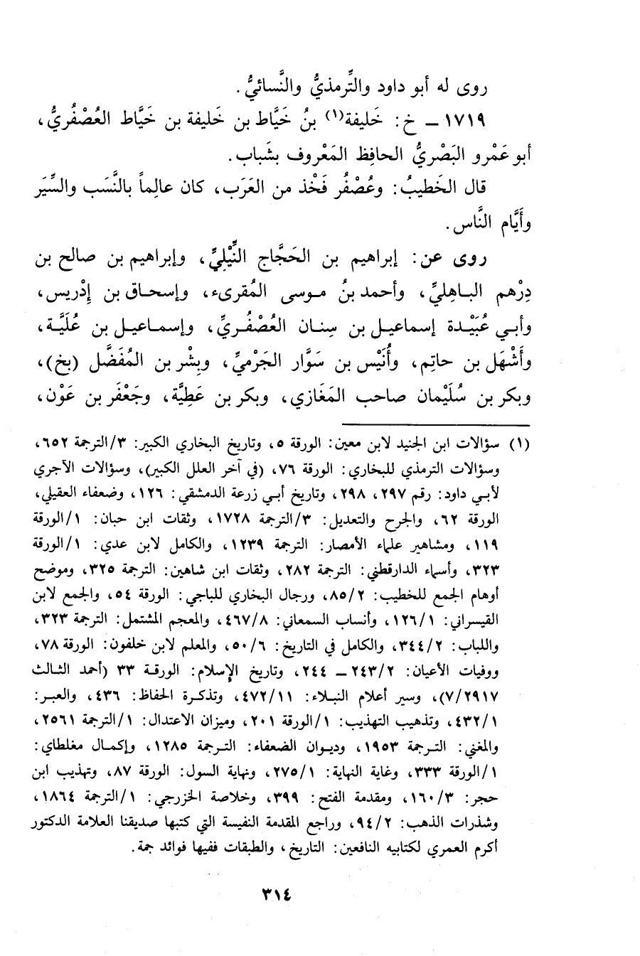 1719 - خ: خليفة بن خياط بن خليفة بن خياط العصفري (1) ، أَبُو عَمْرو البَصْرِيّ الْحَافِظ المعروف بشباب.