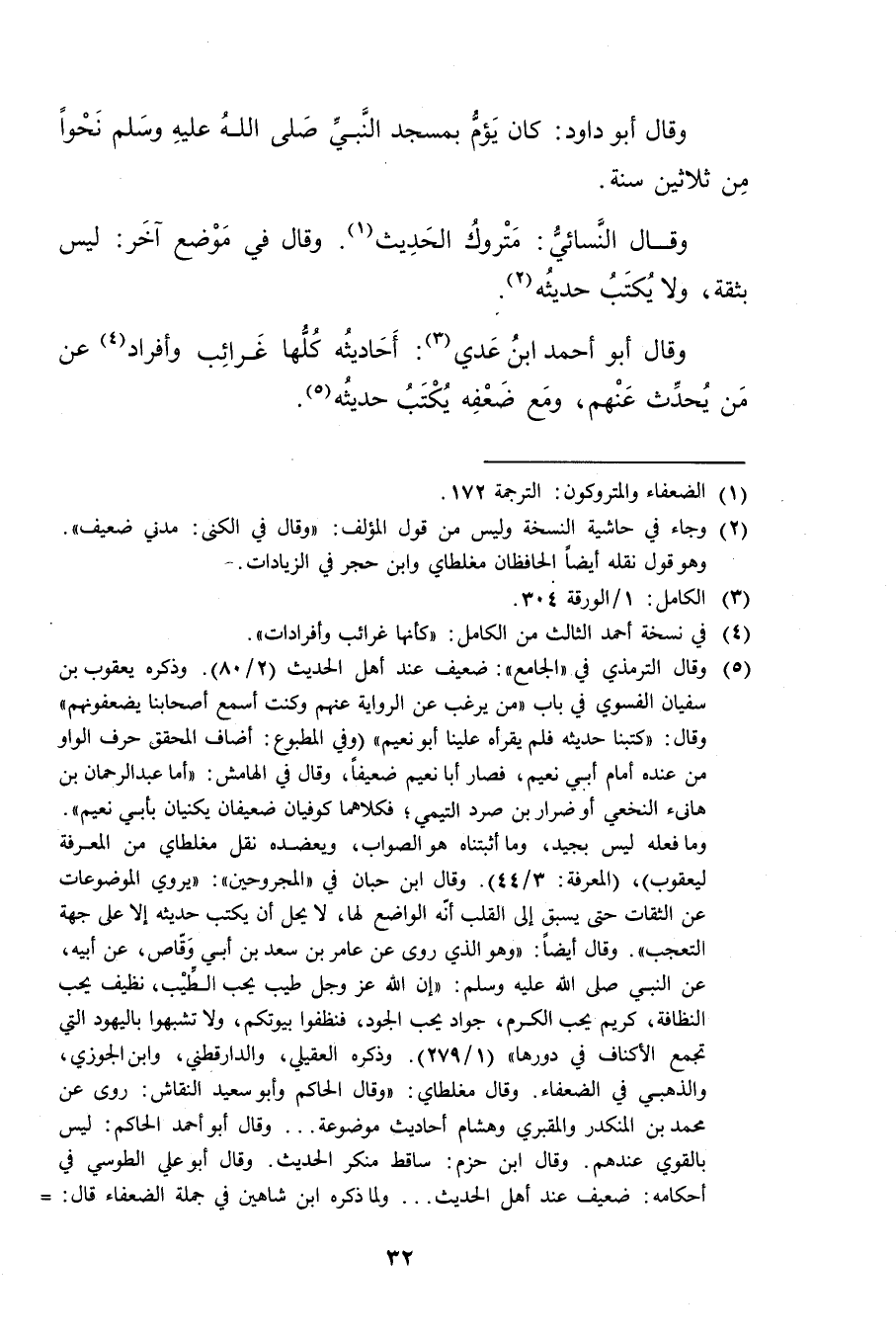 (1) الضعفاء والمتروكون: الترجمة 172.