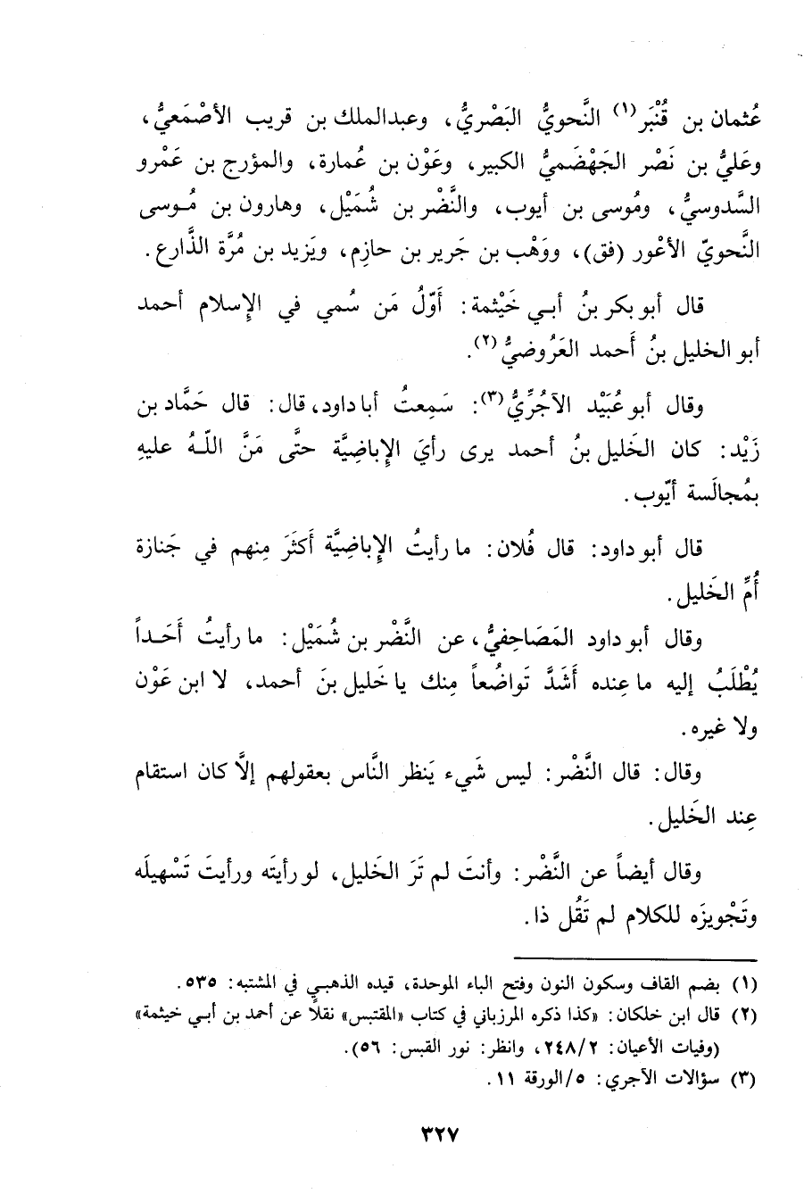 (2) قال ابن خلكان: كذا ذكره المرزباني في كتاب"المقتبس"نقلا عن أحمد بن أَبي خيثمة" (وفيات الاعيان: 2 / 248، وانظر: نور القبس: 56) .