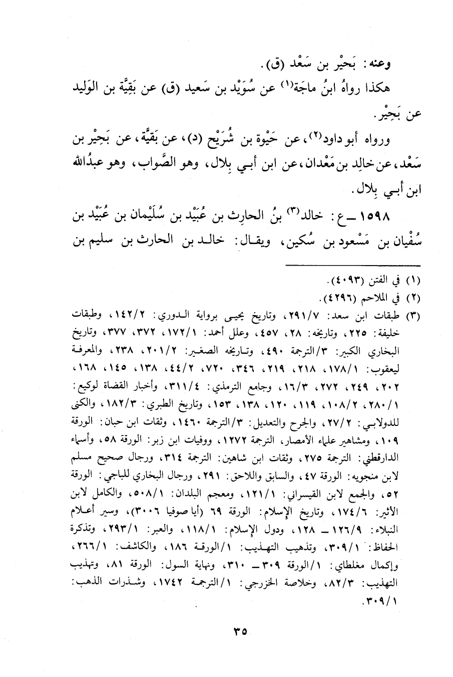 هكذا رواه ابْن مَاجَهْ (1) عَنْ سويد بْن سَعِيد (ق) ، عَنْ بقية بْن الْوَلِيدِ عَنْ بحير.