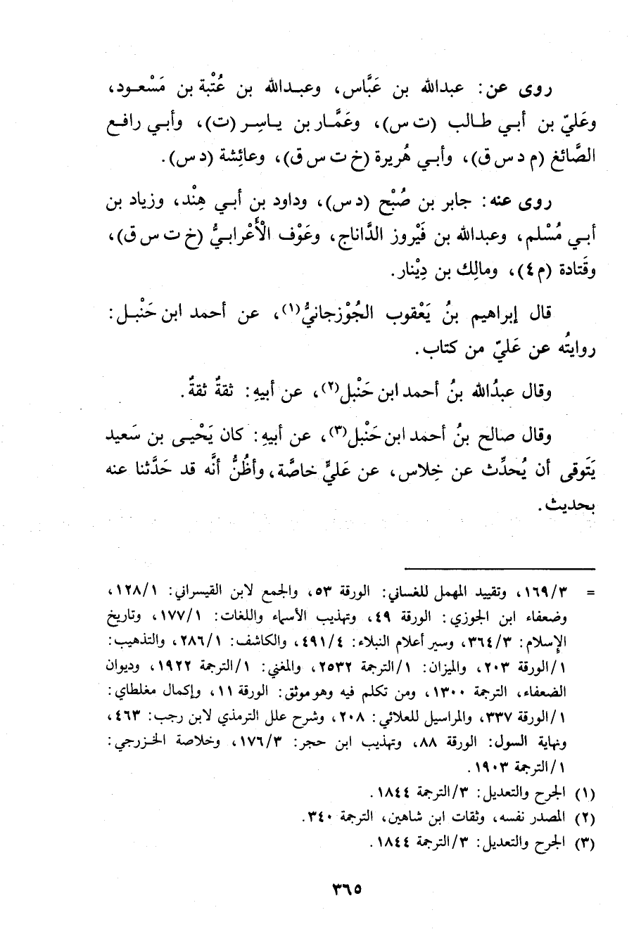 = 3 / 169، وتقييد المهمل للغساني: الورقة 53، والجمع لابن القيسراني: 1 / 128، وضعفاء ابن الجوزي: الورقة 49، وتهذيب الأَسماء واللغات: 1 / 177، وتاريخ الاسلام: 3 / 364، وسير أعلام النبلاء: 4 / 491، والكاشف: 1 / 286، والتذهيب: 1 / الورقة 203، والميزان: 1 / الترجمة 2532، والمغني: 1 / الترجمة 1922، وديوان الضعفاء، الترجمة 1300، ومن تكلم فيه وهو موثق: الورقة 11، وإكمال مغلطاي: 1 / الورقة 337، والمراسيل للعلائي: 208، وشرح علل التِّرْمِذِيّ لابن رجب: 463، ونهاية السول: الورقة 88.