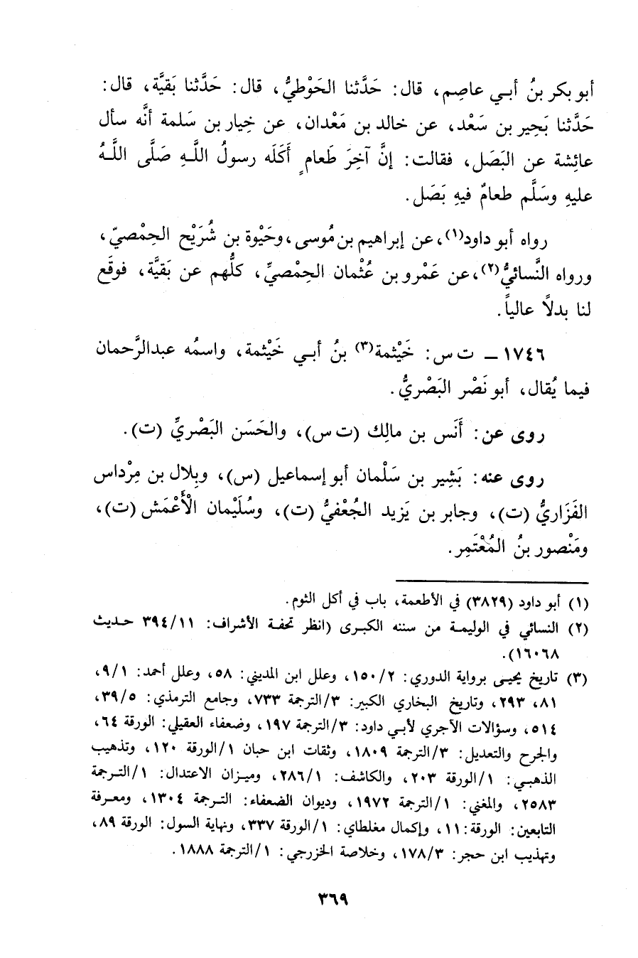1746 - ت س: خيثمة بن أَبي خيثمة (3) ، واسمه عَبْد الرَّحْمَنِ فيما يقَالَ، أَبُو نصر البَصْرِيّ.