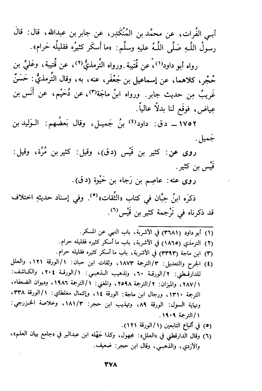 (4) الجرح والتعديل: 3 / الترجمة 1873، وثقات ابن حبان: 1 / الورقة 121، والعلل للدار قطني: 2 / الورقة 60، وتذهيب الذهبي: 1 / الورقة 204، والكاشف: 1 / 287، والميزان: 2 / الترجمة 2598، والمغني: 1 / الترجمة 1986، وديوان الضعفاء الترجمة 1310، ورجال ابن ماجة: الورقة 14، وإكمال مغلطاي: 1 / الورقة 338، ونهاية السول: الورقة 89، وتهذيب ابن حجر: 3 / 181، وخلاصة الخزرجي: