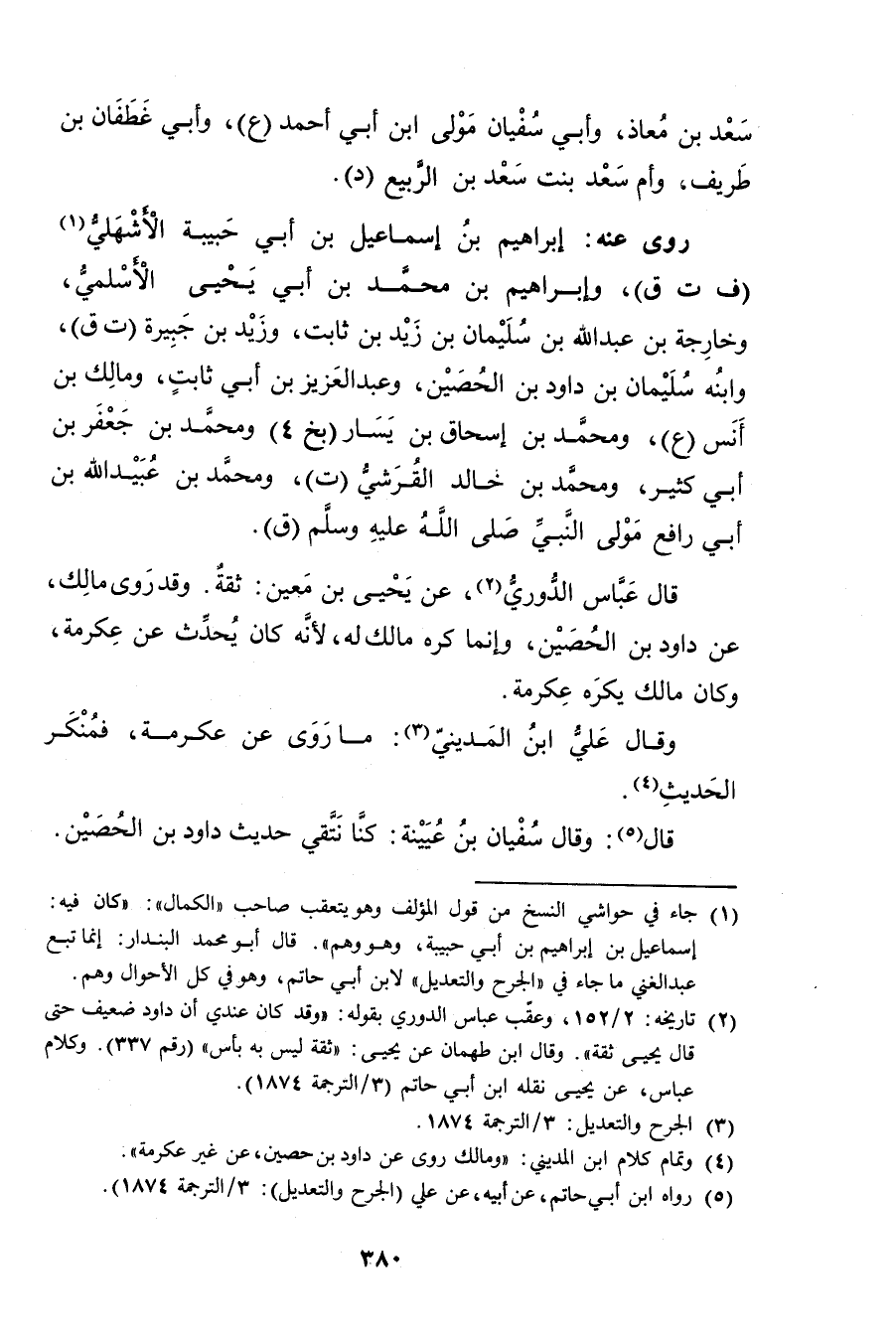 (2) تاريخه: 2 / 152، وعقب عباس الدور بقوله: وقد كان عندي أن داود ضعيف حتى قال يحيى ثقة"وَقَال ابن طهمان عن يحيى: ثقة ليس بِهِ بأس" (رقم 337) . وكلام عباس، عن يحيى نقله ابن أَبي حاتم (3 / الترجمة 1874) .