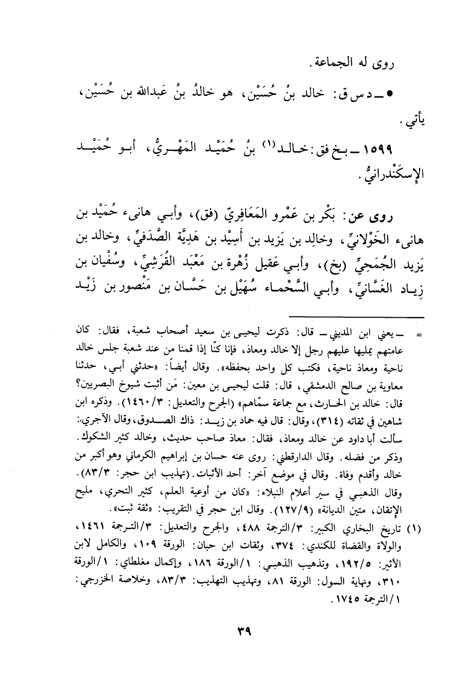 1599 - بخ فق: خالد بن حميد المهري (1) ، أَبُو حميد الاسكندراني.