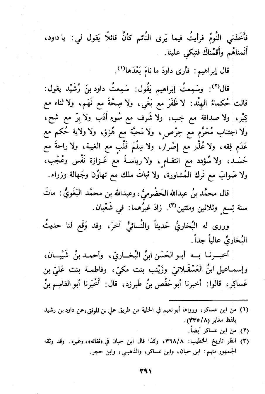 (3) انظر تاريخ الخطيب: 8 / 368، وكذا قال ابن حبان في "ثقاته"وغيره. وقد وثقه الجمهور منهم: ابن حبان، وابن عساكر، والذهبي، وابن حجر.