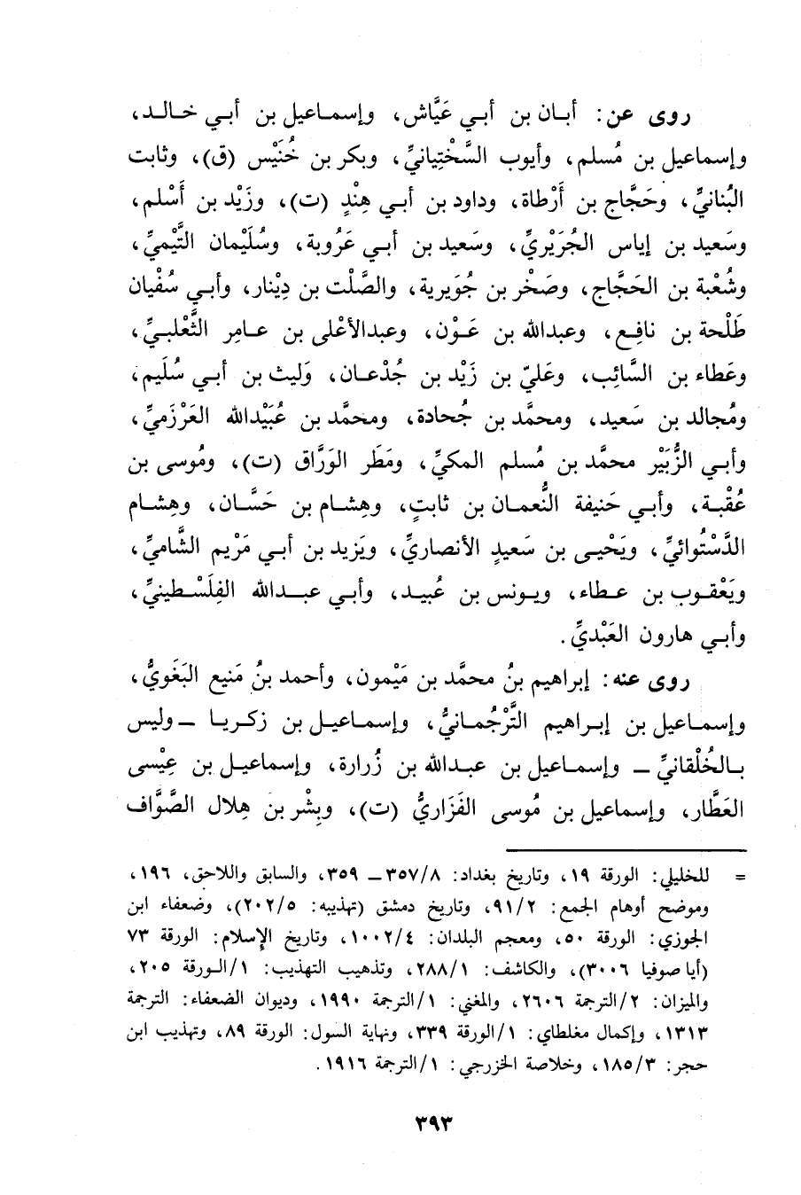 = للخليلي: الورقة 19، وتاريخ بغداد: 8 / 357 - 359، والسابق واللاحق، 196، وموضح أوهام الجمع: 2 / 91، وتاريخ دمشق (تهذيبه: 5 / 202) ، وضعفاء ابن الجوزي: الورقة 50، ومعجم البلدان: 4 / 1002، وتاريخ الاسلام: الورقة 73 (أيا صوفيا 3006) والكاشف: 1 / 288، وتذهب التهذيب: 1 / الورقة 205، والميزان: 2 / الترجمة 2606، والمغني: 1 / الترجمة 1990، وديوان الضعفاء: الترجمة 1313، وإكمال مغلطاي: 1 / الورقة 339، ونهاية السول: الورقة 89، وتهذيب ابن حجر: 3 / 185، وخلاصة الخزرجي: 1 / الترجمة 1916.