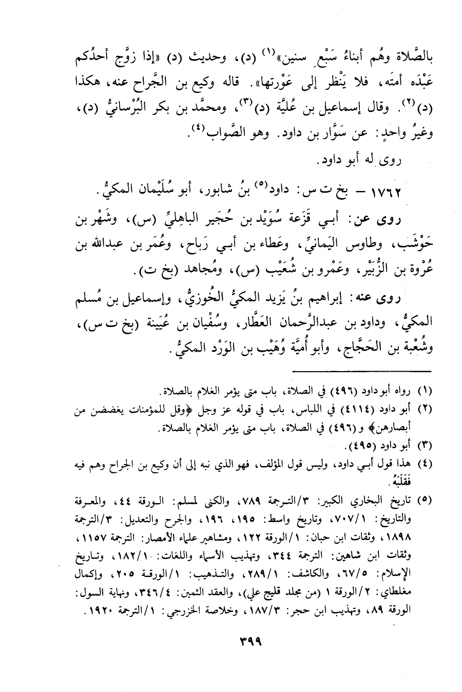 1762 - بخ ت س: دَاوُد بن شابور (5) ، أَبُو سُلَيْمان المكي، روى عن: أبي قزعة سويد بْن حجير الباهلي (س) وشهر بْن حوشب، وطاوس اليماني، وعطاء بْن أَبي رباح، وعُمَر بْن عَبد اللَّهِ بْن عروة بْن الزبير، وعَمْرو بْن شعيب (س) ، ومجاهد (بخ ت) .