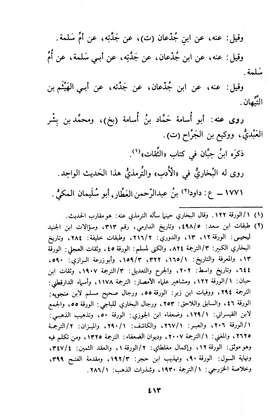 (1) 1 / الورقة 122، وقَال البُخارِيُّ حينما سأله التِّرْمِذِيّ عَنه: هو مقارب الحديث.