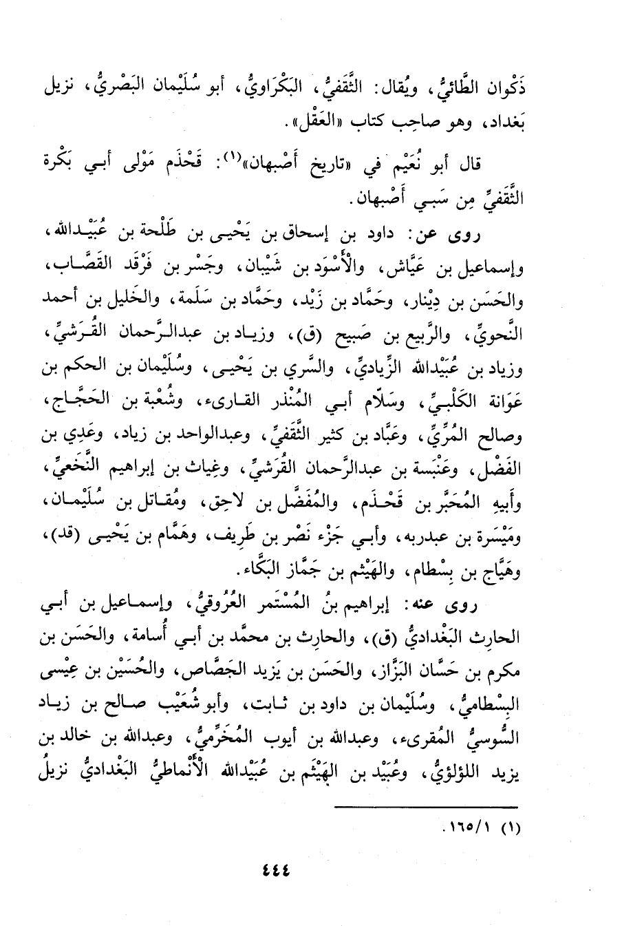 ذكوان الطائي، ويُقال: الثقفي، البكراوي، أَبُو سُلَيْمان البَصْرِيّ، نزيل بغداد، وهو صاحب كتاب"العقل.