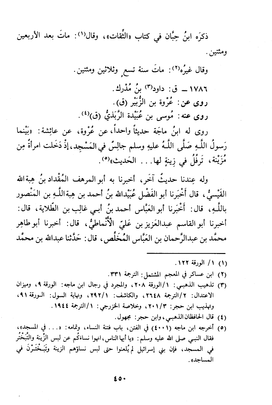 (3) تذهيب الذهبي: 1 / الورقة 208، والمجرد في رجال ابن ماجة: الورقة 9، وميزان الاعتدال: 2 / الترجمة 2648، والكاشف: 1 / 292، ونهاية السول: الورقة 91، وتهذيب ابن حجر: 3 / 201، وخلاصة الخزرجي: 1 / الترجمة 1944.
