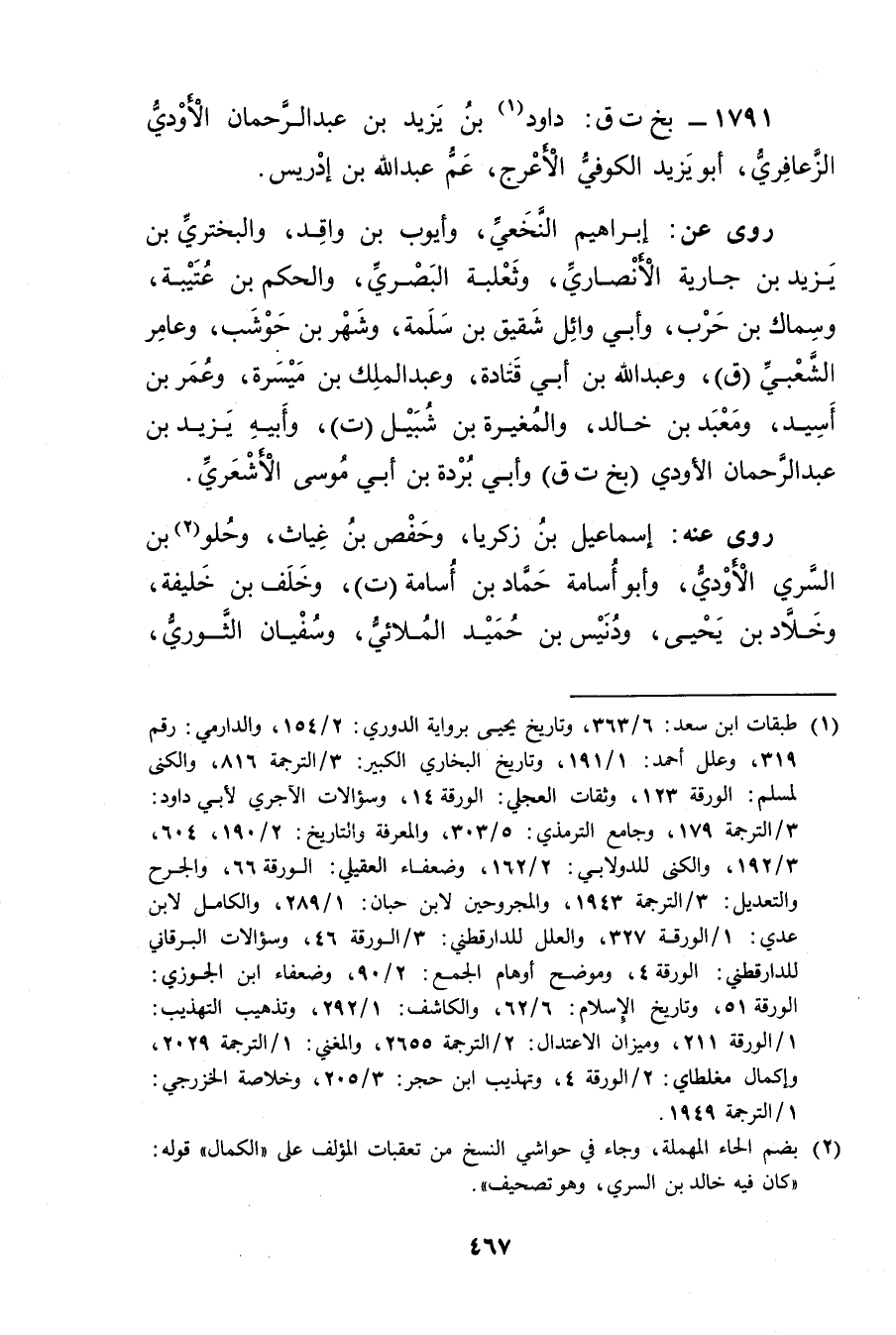 1791 - بخ ت ق: دَاوُد بن يزيد بن عَبْد الرحمن الأَودِيّ الزعافري (1) ، أَبُو يزيد الكوفي الأعرج, عم عَبد اللَّهِ بْن إدريس.