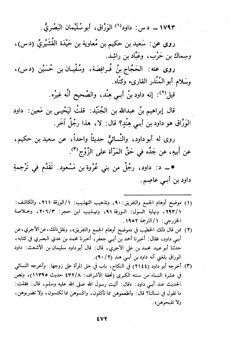 1793 - دس: دَاوُد الوراق (1) ، أَبُو سُلَيْمان البَصْرِيّ.