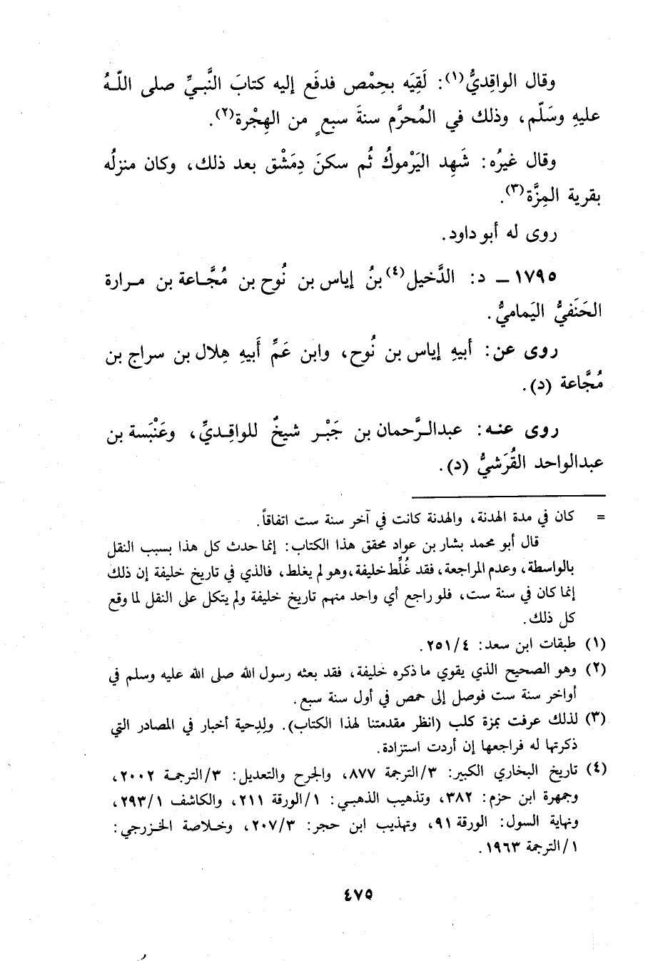 (2) وهو الصحيح الذي يقوي ما ذكره خليفة، فقد بعثه رسول الله صلى الله عليه وسلم في أواخر سنة ست فوصل إلى حمص في أول سنة سبع.