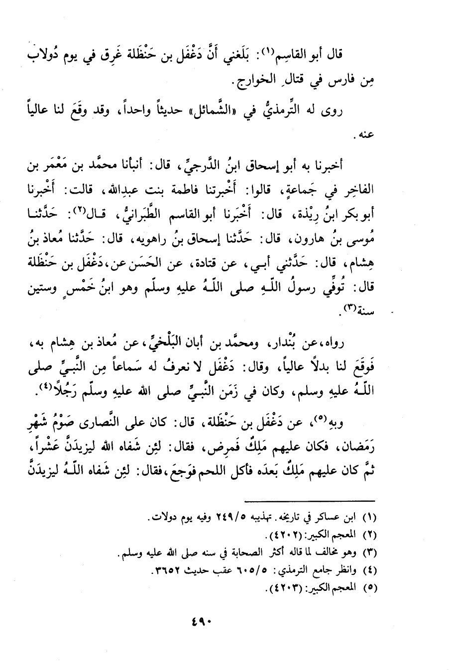 قال أَبُو الْقَاسِمِ (1) : بلغني أن دغفل بْن حنظلة غرق فِي يوم دولاب من فارس فِي قتال الخوارج.