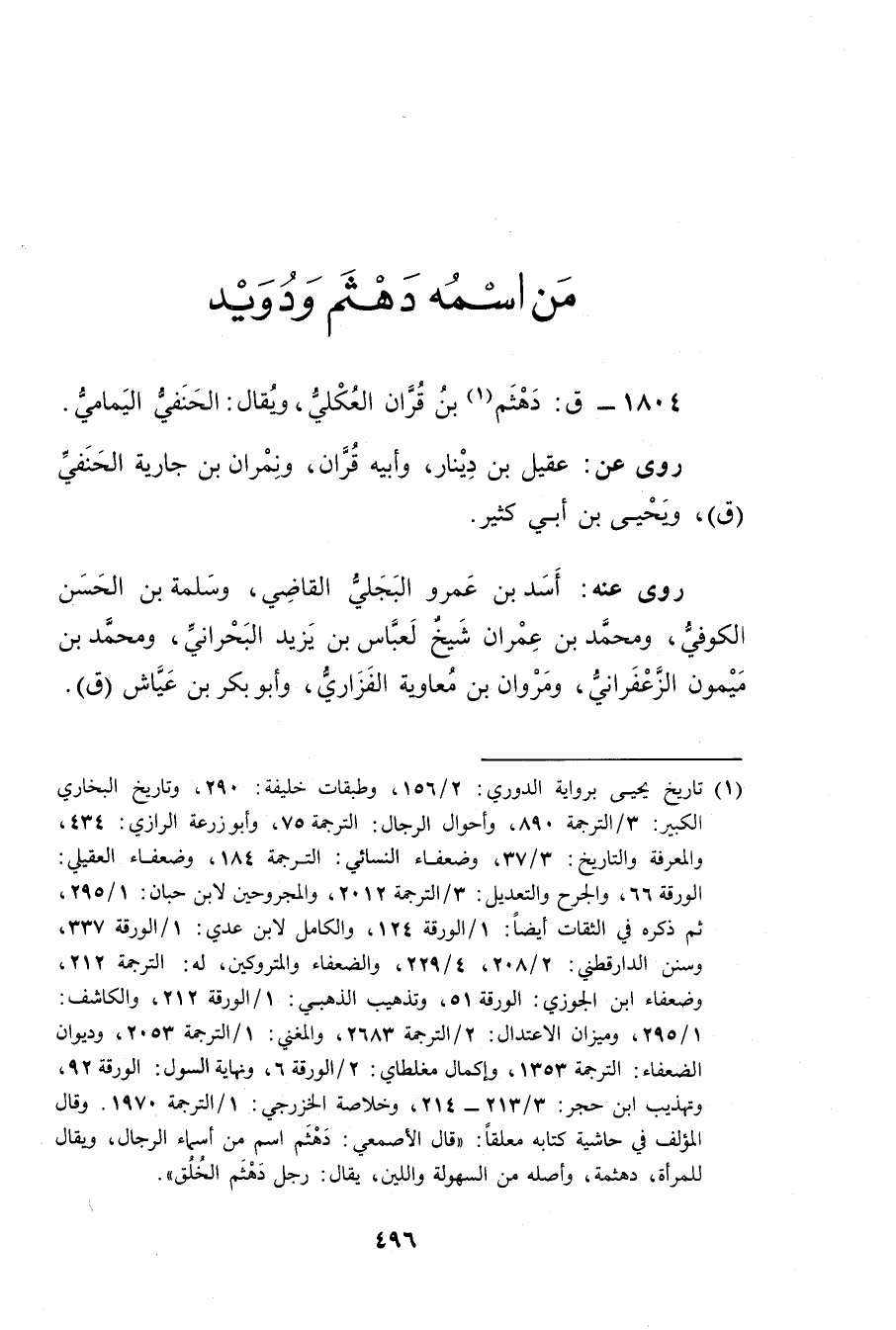 1804 - ق: دهثم بن قران العكلي (1) : ويُقال: الحنفي اليمامي.