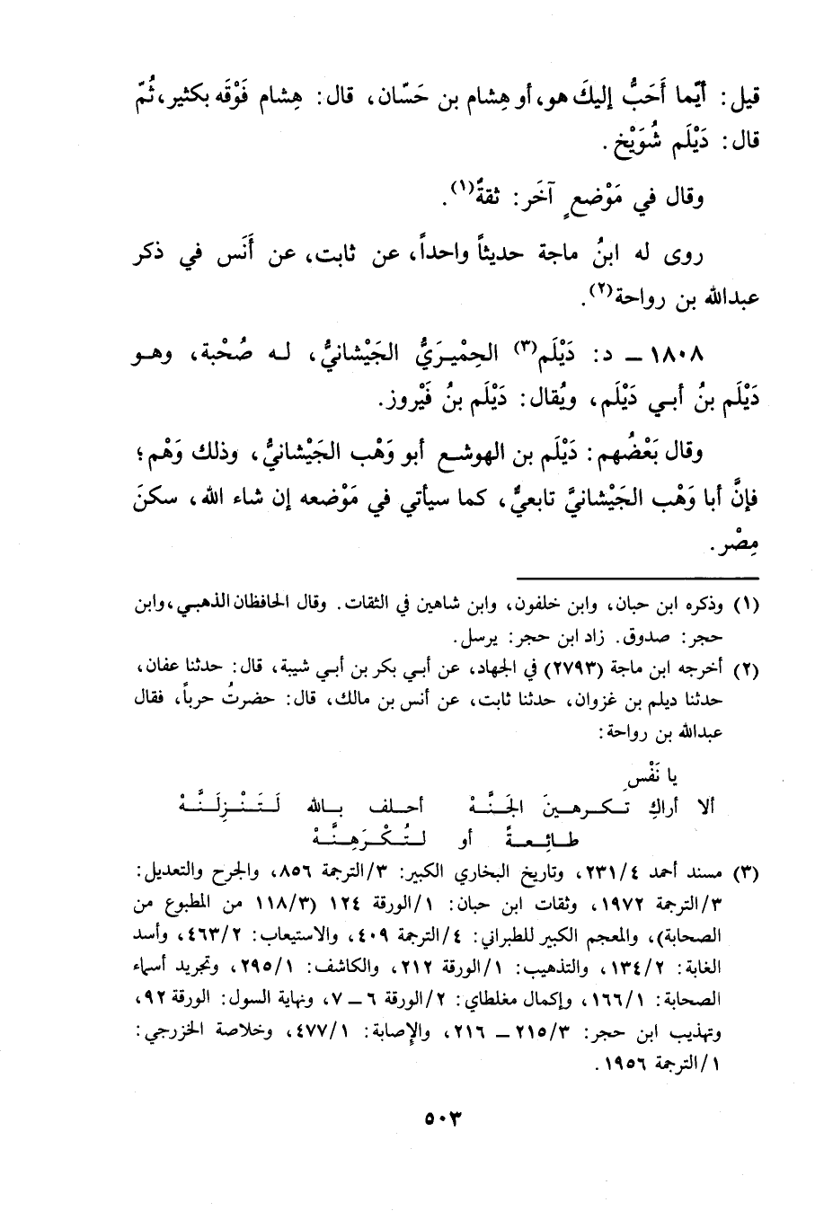 1808 - د: ديلم الحميري الجيشاني (3) ، لهُ صُحبَةٌ، وهو ديلم بْن أَبي ديلم، ويُقال: ديلم بْن فيروز.