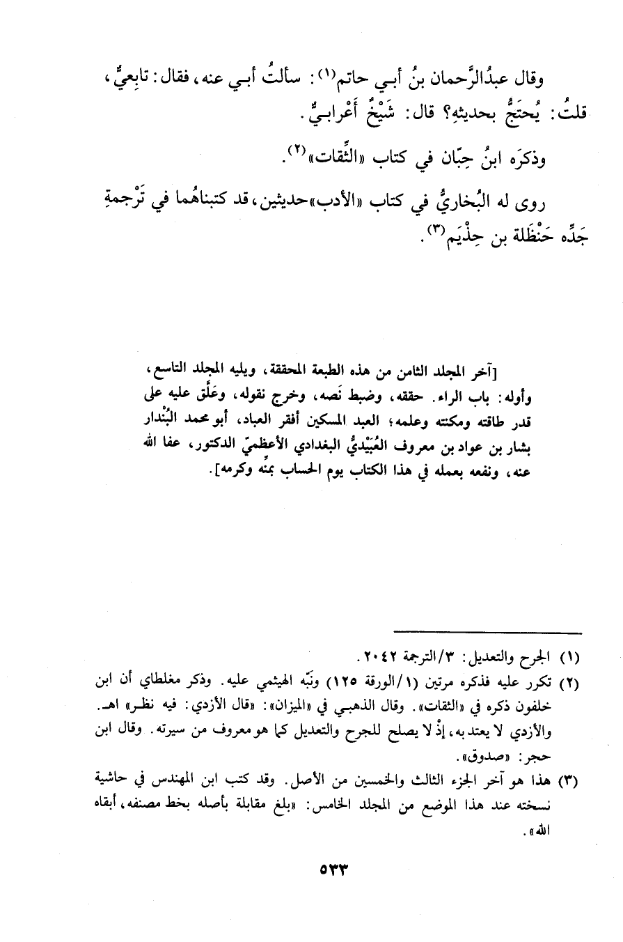 (1) الجرح والتعديل: 3 / الترجمة 2042.