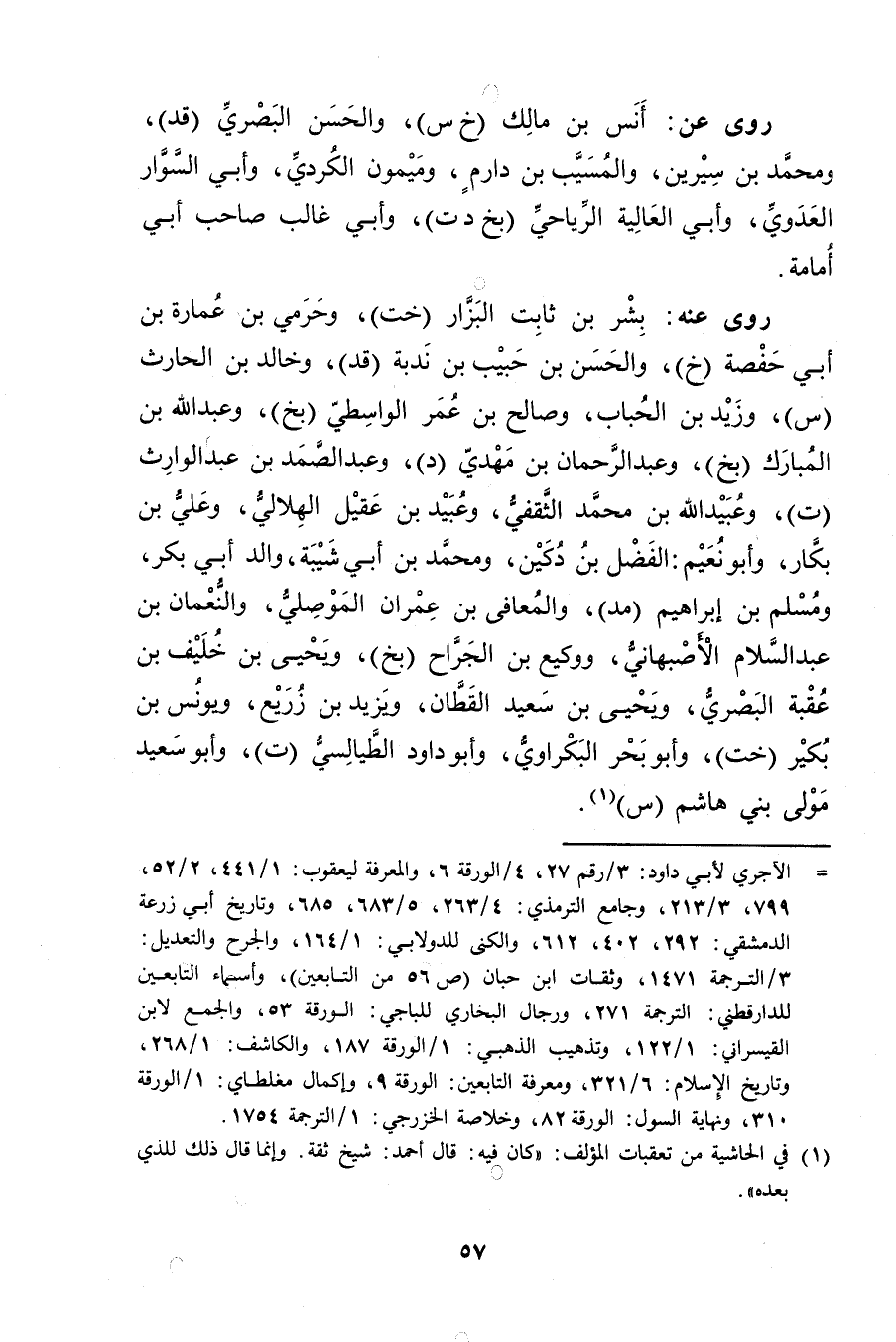 = الآجري لابي داود: 3 / رقم 27، 4 / الورقة 6، والمعرفة ليعقوب: 1 / 441، 2 / 52، 799، 3 / 213، وجامع التِّرْمِذِيّ: 4 / 263، 5 / 283، 285، وتاريخ أبي زرعة الدمشقي: 292، 402، 612، والكنى للدولابي: 1 / 164، والجرح والتعديل: 3 / الترجمة 1471 وثقات ابن حبان (ص 56 من التابعين) وأسماء التابعين للدار قطني: الترجمة 271، ورجال البخاري للباجي: الورقة 53، والجمع لابن القيسراني: 1 / 122، وتذهيب الذهبي: 1 / الورقة 187، والكاشف: 1 / 268، وتاريخ الاسلام: 6 / 321، ومعرفة التابعين: الورقة 9، وإكمال مغلطاي: 1 / الورقة 310، ونهاية السول: الورقة 82، وخلاصة الخزرجي: 1 / الترجمة 1754.