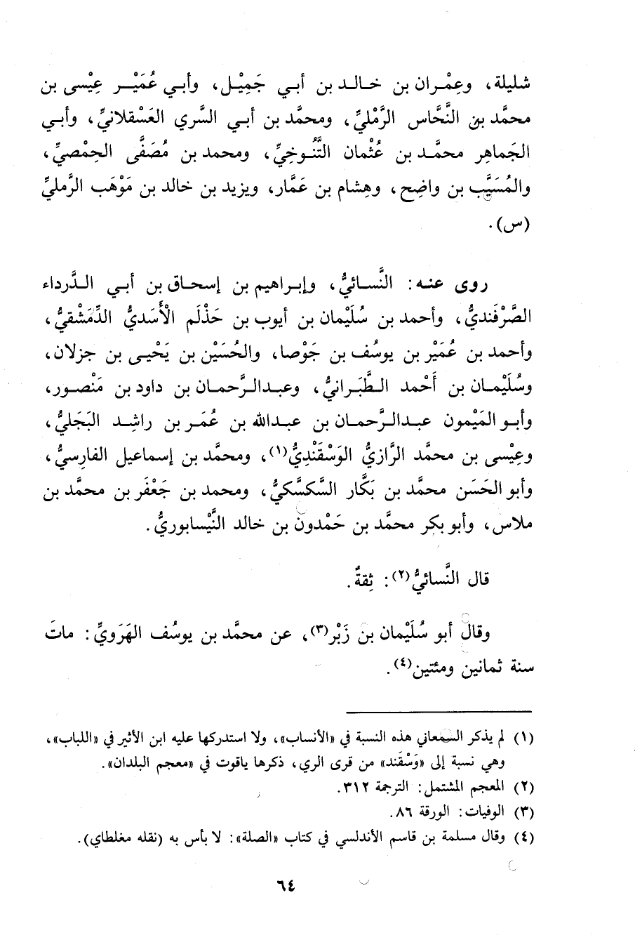 (4) وَقَال مسلمة بن قاسم الاندلسي في كتاب"الصلة": لا بأس به (نقله مغلطاي) .