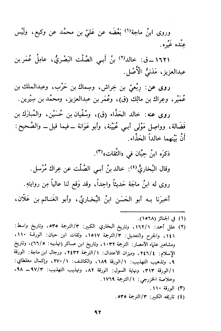 (2) علل أحمد: 1 / 162، وتاريخ البخاري الكبير: 3 / الترجمة 535، وتاريخ واسط: 141، والجرح والتعديل: 3 / الترجمة 1517، وثقات ابن حبان: الورقة 110، ومشاهير علماء الامصار: الترجمة 1032، وتاريخ ابن عساكر (تهذيبه: 5 / 66) ، وتاريخ الاسلام: 4 / 246، وميزان الاعتدال: 1 / الترجمة 2432، ورجال ابن ماجة: الورقة 9، وتذهيب التهذيب: 1 / الورقة 189، والكاشف: 1 / 270.